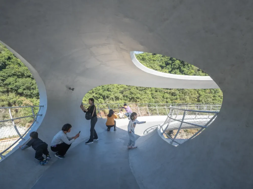 Además de la belleza natural, en los alrededores del monte Luofu se pueden encontrar y visitar distintos templos taoístas, lo que transforma a este lugar -ubicado al norte de Hong Kong- en una interesante zona turística. A estas edificaciones, ahora se suma el pabellón “Resting View with Loops” que el estudio de arquitectura HCCH Studio instaló recientemente en una plataforma ubicada en esta misma zona.