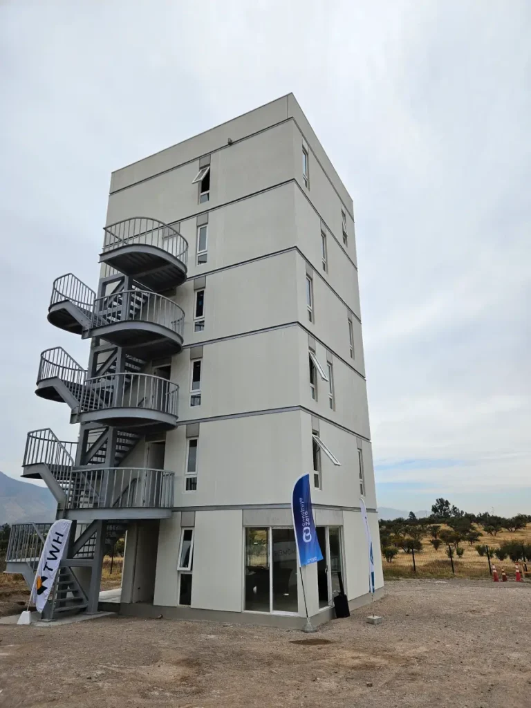 Cuando Facoro, junto con TWH y STO Chile se encontraban en el proceso de lanzamiento de la tecnología en la feria EDIFICA 2024, se enteraron que a Construye Zero, programa de CTEC cofinanciado por Corfo, se le había caído uno de los proyectos: un edificio de construcción industrializada. “Les comentamos que teníamos esta solución y les encantó la idea”, recuerda Mery.
