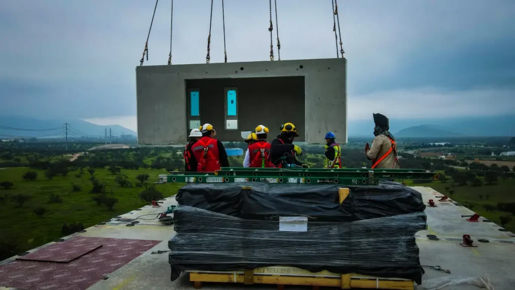El diseño también consideró aspectos normativos: temas de peso para cumplir con las regulaciones, dimensiones para el traslado, capacidad de las grúas disponibles en el mercado, y sistemas de conexión validados por oficinas de ingeniería. “Hicimos un montón de ejercicios, nos apoyamos en ingeniería con las oficinas externas que nos apoyan siempre para poder ir validando todos los sistemas de conexión”, detalló Mery.