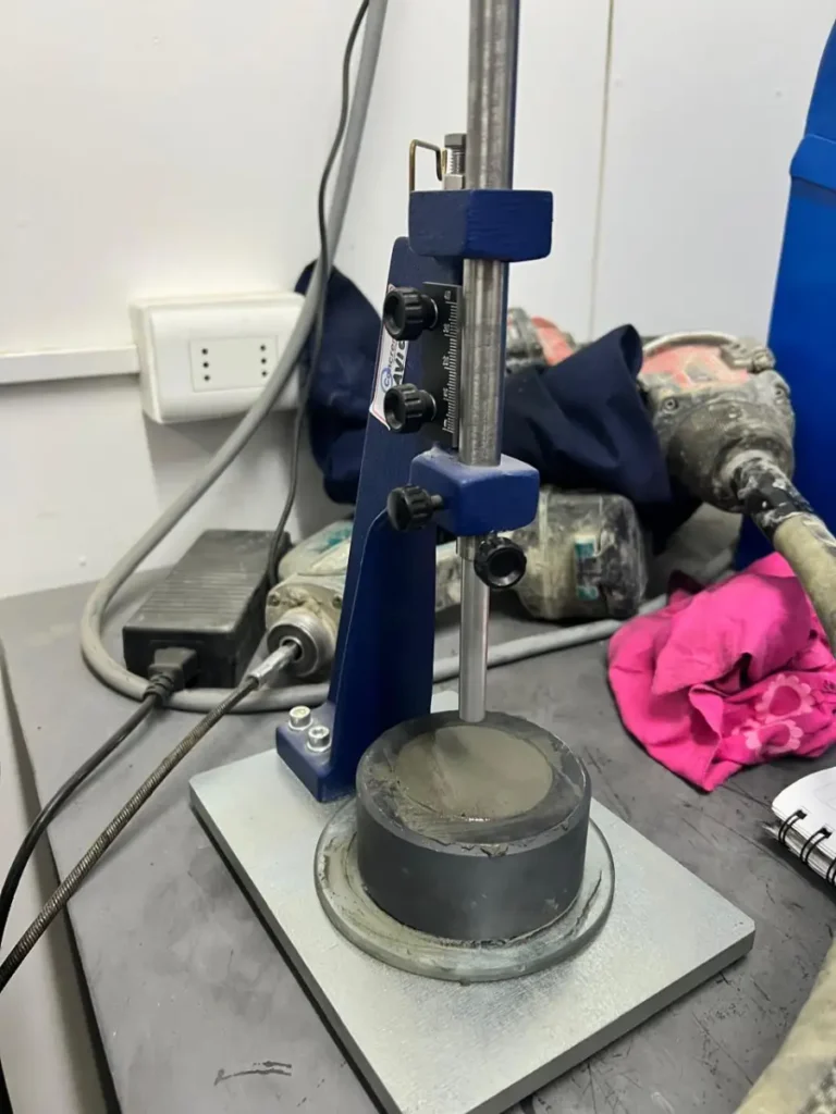 Foto: Ensayos de trabajabilidad en laboratorio del hormigón autocalefaccionable. Crédito: Gentileza Yasna Segura