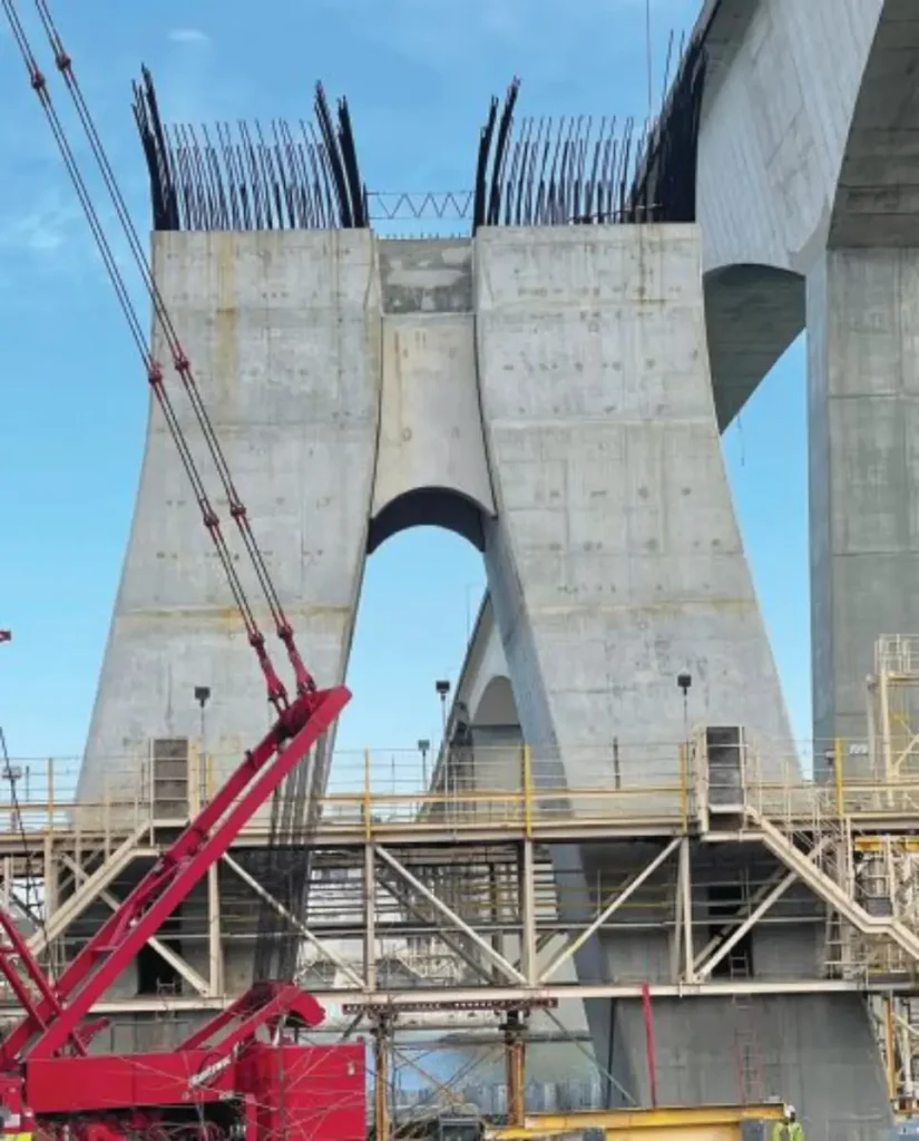 Cuando cuatro pilones de puente de 30,5 metros de altura -construidos, pero nunca utilizados- se consideraron incompatibles con un diseño de puente revisado, se encargó a el equipo desmontarlos de manera segura, eficiente y sin dañar los elementos estructurales designados para reutilización (Fig. 1).