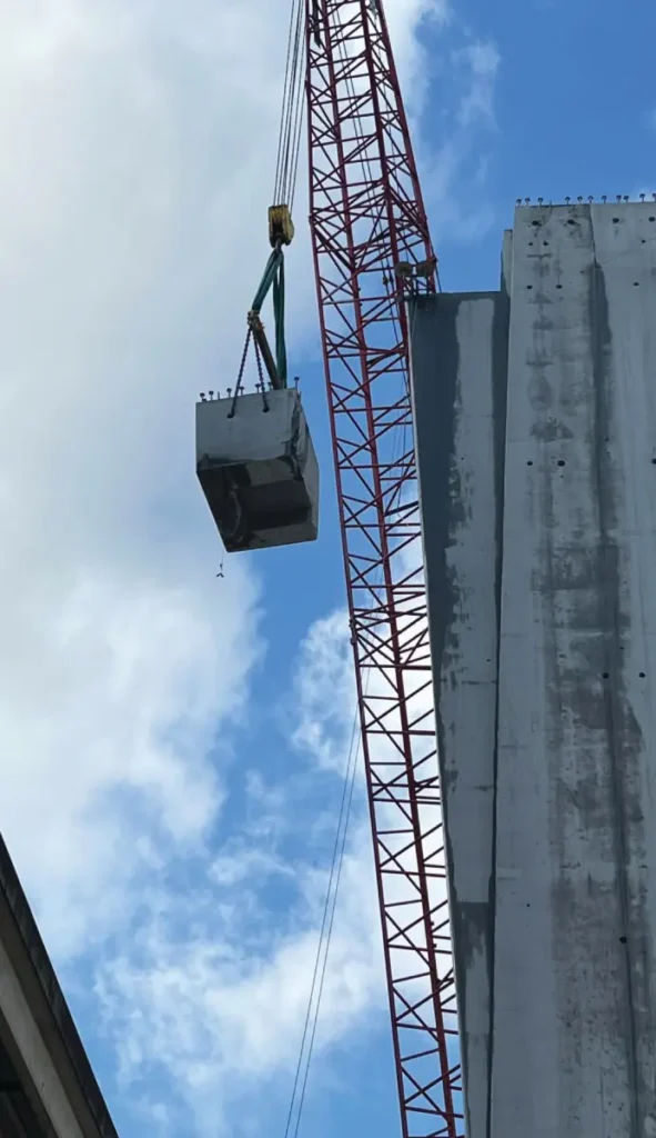 Los equipos operaron en turnos escalonados para alinearse con el trabajo de grúa durante el día y evitar interferencias en las zonas de izaje. Una programación cuidadosa permitió que las operaciones solapadas avanzaran sin interrupción, mientras que reuniones regulares entre ingenieros estructurales, equipos de demolición y personal de supervisión ayudaron a mantener claridad y alineación durante todo el proyecto.