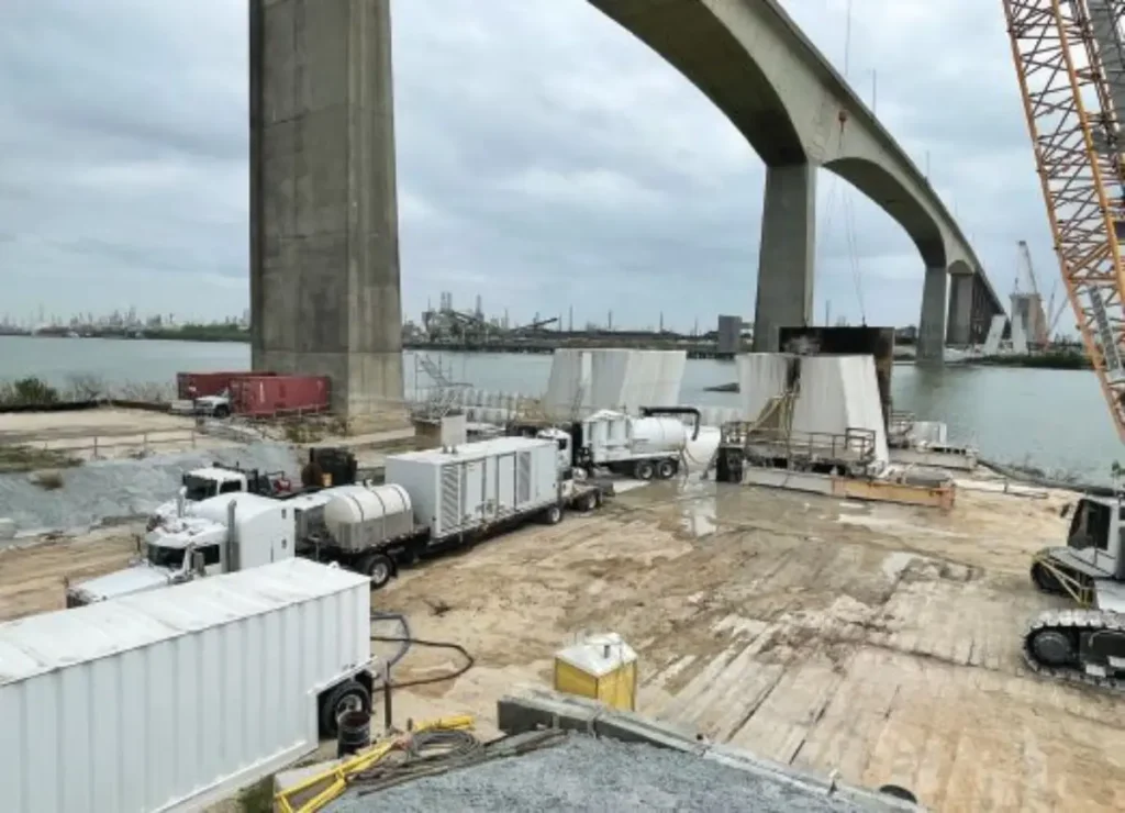 Las condiciones climáticas a lo largo del Canal Marítimo de Houston presentaron otro conjunto de desafíos. Vientos fuertes y tormentas periódicas ocasionalmente retrasaron las operaciones de grúa en altura. La coordinación entre oficios, programación adaptativa y reuniones de interfaz rutinarias aseguraron que el progreso continuara sin comprometer la seguridad o eficiencia.