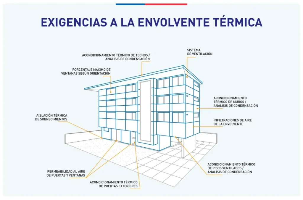 La nueva reglamentación no se limita a aumentar las exigencias de transmitancia térmica en techos, muros y pisos ventilados. Incorpora además una serie de requisitos que antes no existían o no estaban regulados de manera explícita.