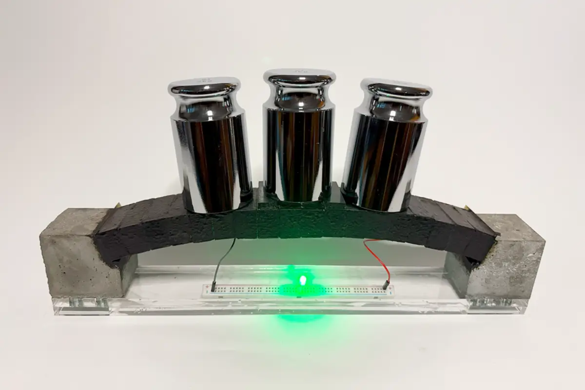 Si bien las baterías mantienen una alta densidad energética, en principio, el hormigón EC3 puede incorporarse directamente en una amplia gama de elementos arquitectónicos (desde losas y muros hasta cúpulas y bóvedas) y durar tanto como la estructura misma. Para eso, el equipo fabricó un arco en miniatura con el EC3 para evidenciar cómo la forma estructural y el almacenamiento de energía pueden trabajar juntos. Operando a 9 voltios, el arco soportó su propio peso y carga adicional mientras energizó una ampolleta LED.